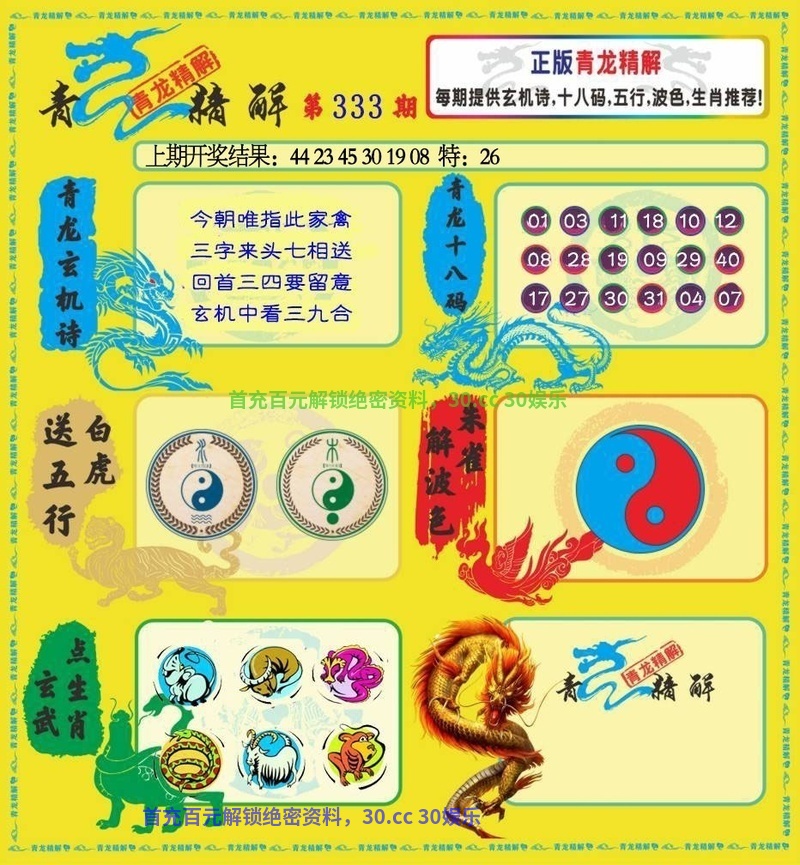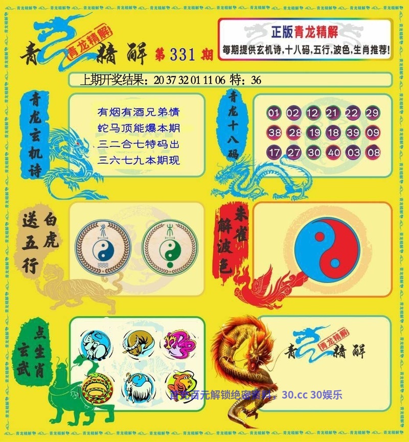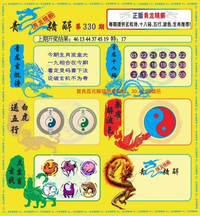330期:【正版青龙图精解】今期生肖发金光.一九相合在今期.看定灵码要下注.说破玄机不为奇 |